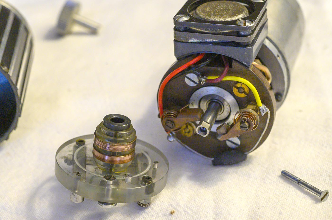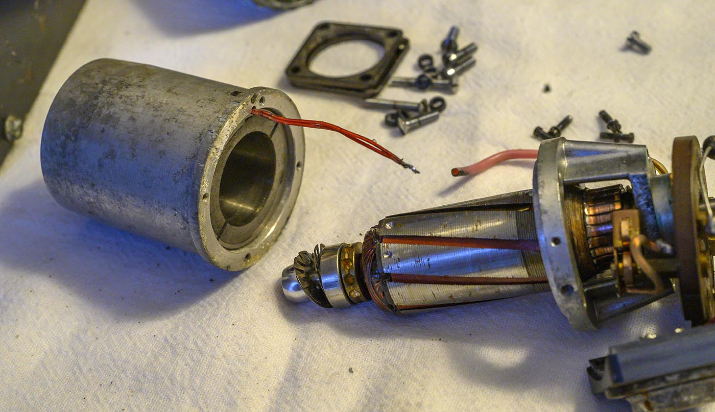 The normal motor brushes are kind of buried in there, but behind that is some kind of governor assembly with another set of brushes.