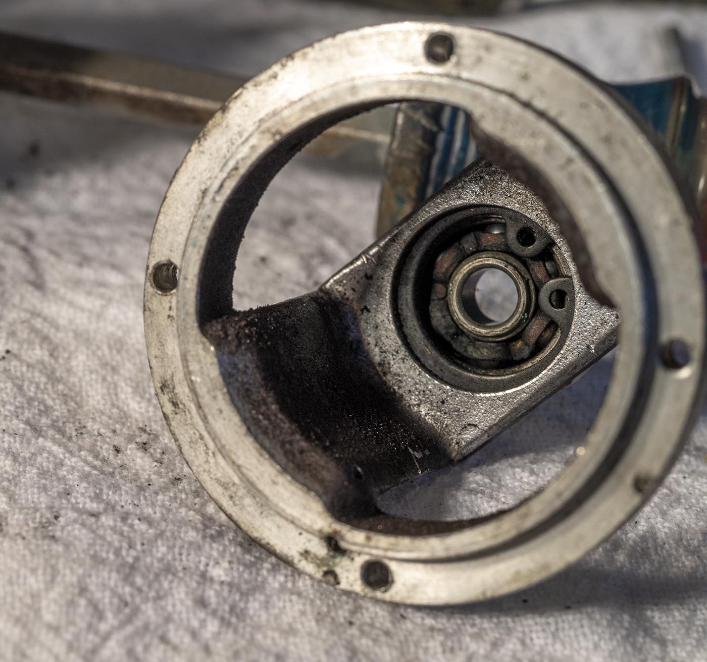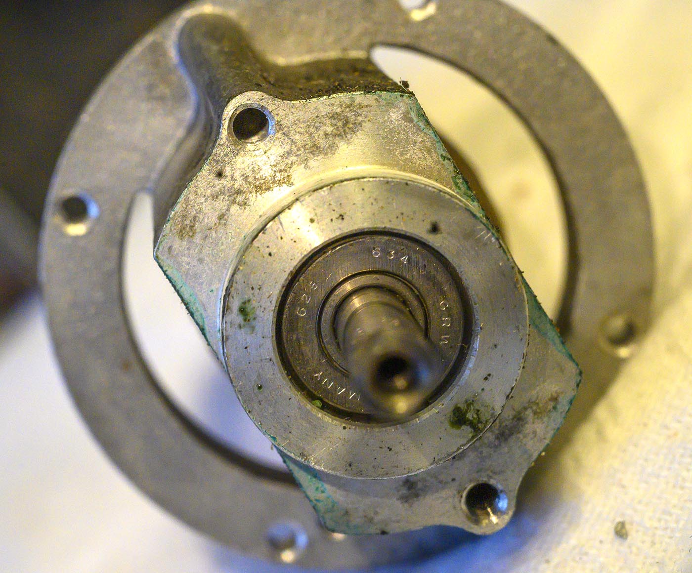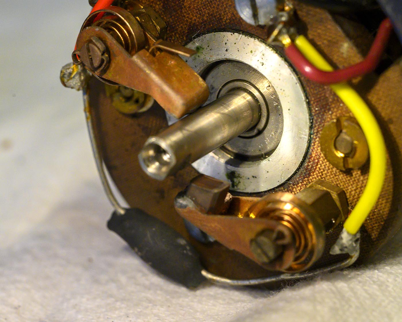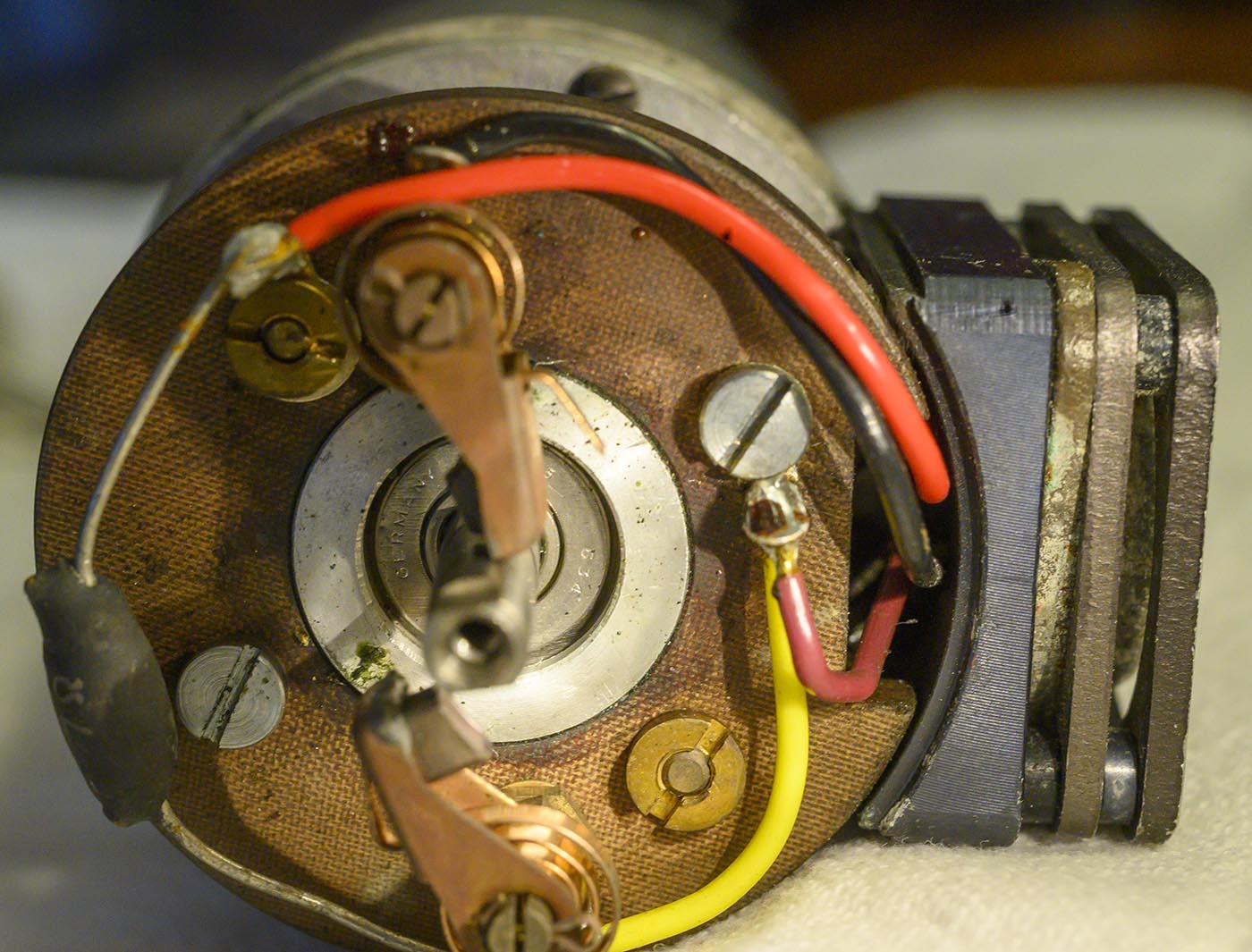 Trying to get a good shot of the bearing number. Failed here, but I'll get it later. You can see how the bakelie plate is used to hold all these brushes and things.