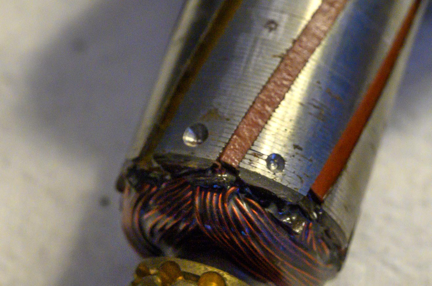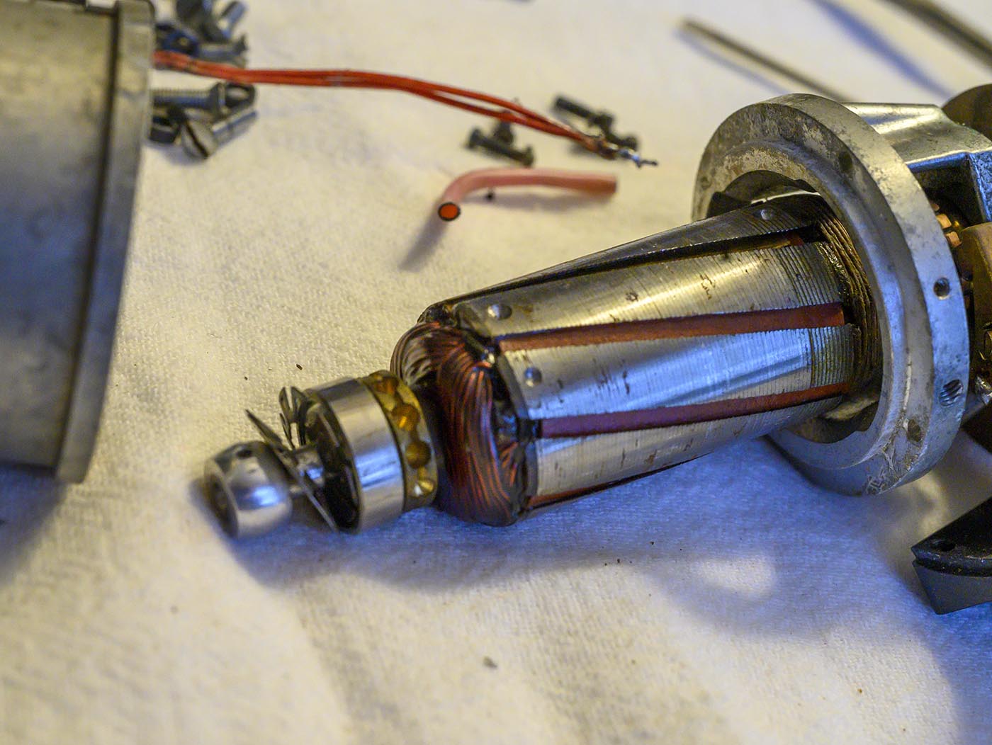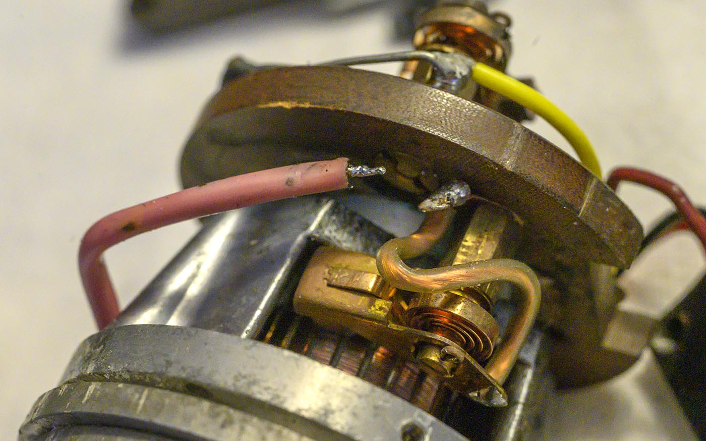 Armature contacts are looking much better after some work with some 2000-grit sandpaper. I cleaned and very lightly lubed the spinning contact areas after sanding,