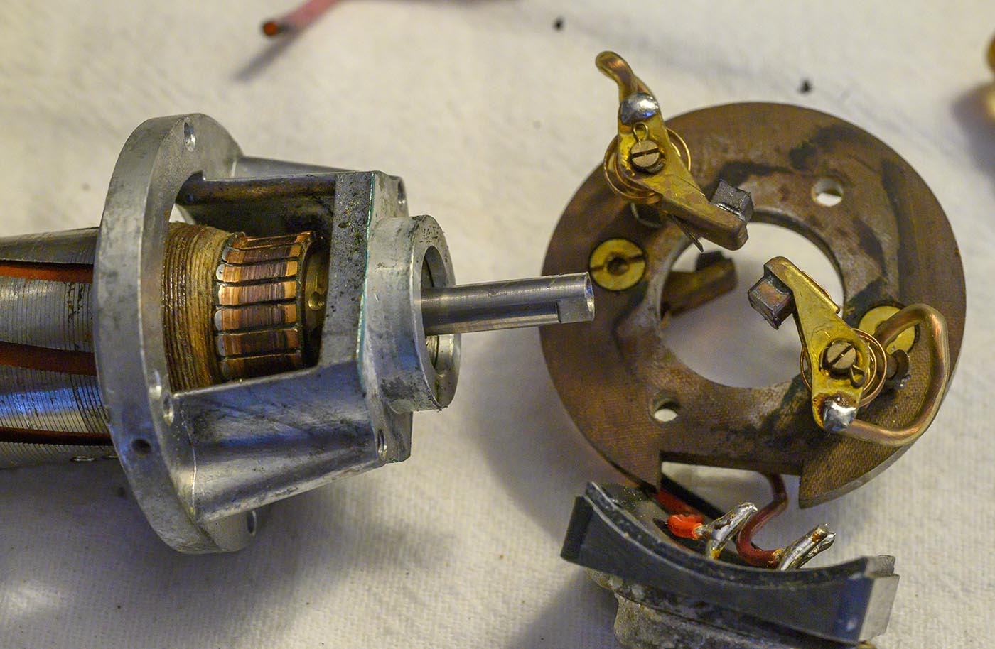 only to discover that it was built slightly differently! The brushes for the governor are mounted 90 degrees apart, instead of 180, and this allows them to use one