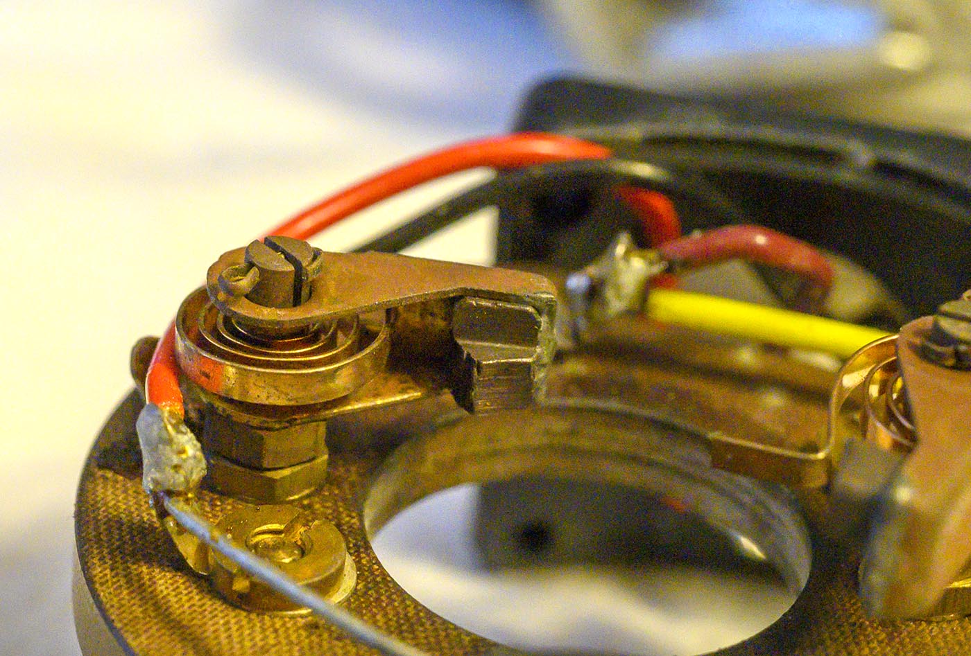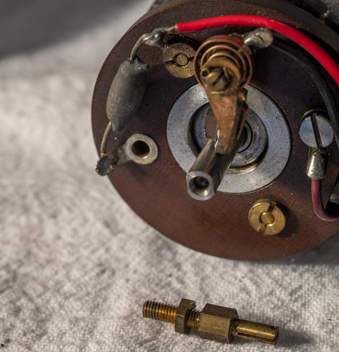 The armature contacts are pretty pitted, we'll sand those down later.
