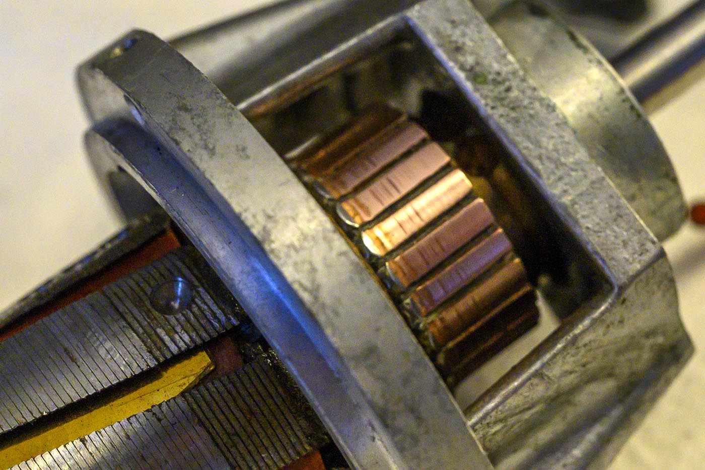 Main motor brushes are really in good shape. Looks like in theory you could unsolder just the carbon brush part and replace them, if such things were available like that.
