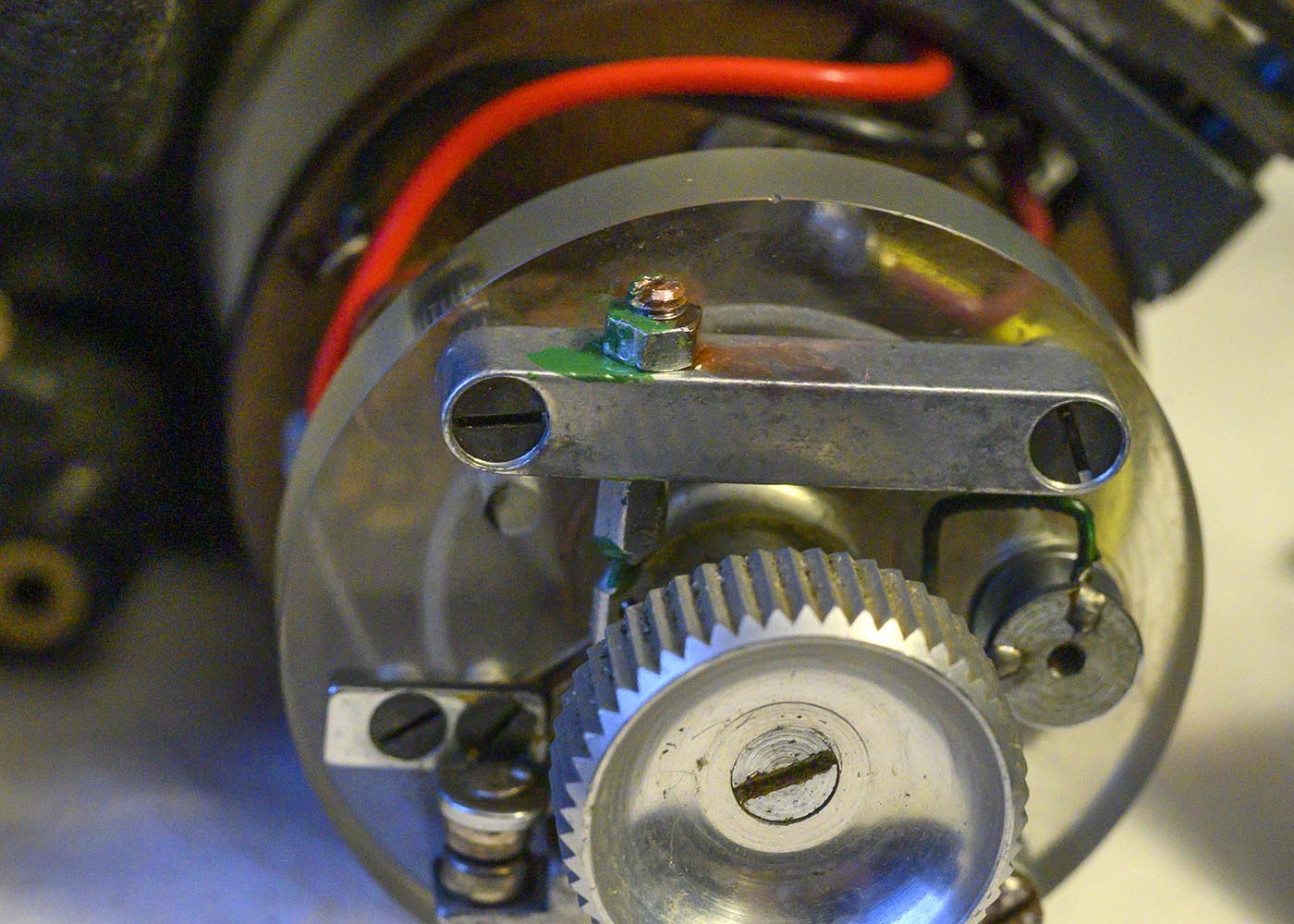 Then it will slow down, restablishing contact, which will make it speed up again, and so on. There seems to be a spring and an adjusting screw involved.